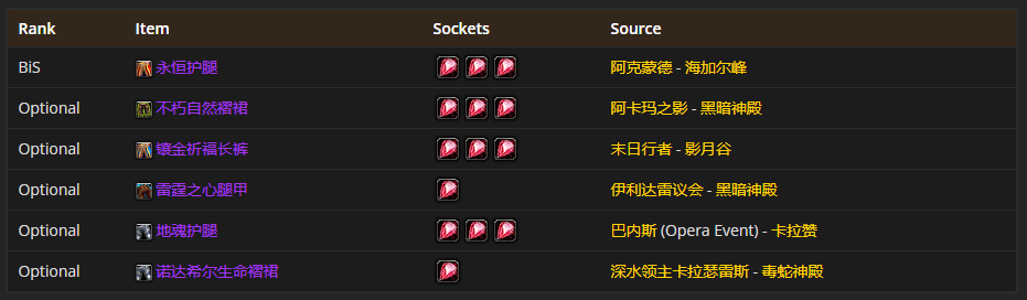 腿部装备首选永恒护腿,附魔推荐 金色魔线