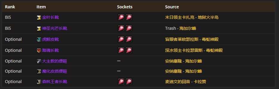 要是挑选脚装备的话,金叶长靴和神圣光芒长靴是首选。至于附魔嘛,附魔长靴 - 野猪之速是比较推荐的。