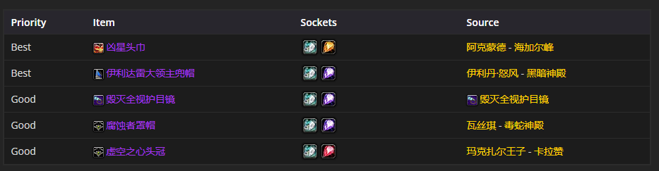 头部装备首选凶星头巾,附魔推荐强能雕文