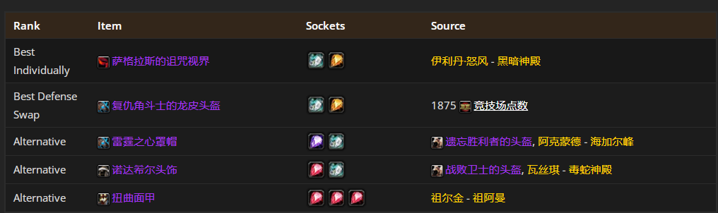 头部装备首选萨拉格斯的诅咒视界,附魔推荐凶暴雕文