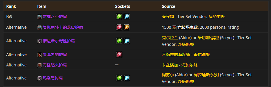 肩部装备首选雷霆之心护肩