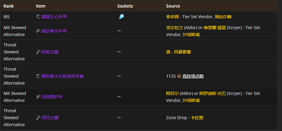 要是挑选手部装备的话,雷霆之心手甲是首选。至于附魔嘛,“附魔手套 - 威胁”是比较推荐的。