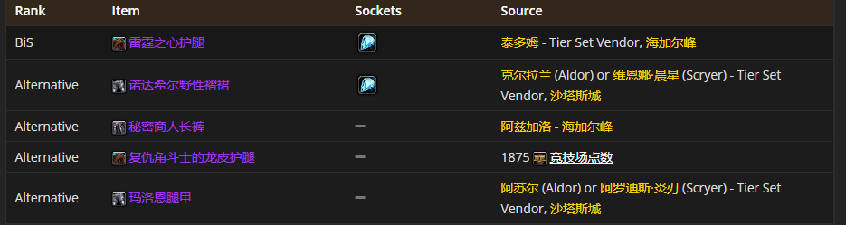 腿部装备首选雷霆之心护腿,附魔推荐 符文魔线