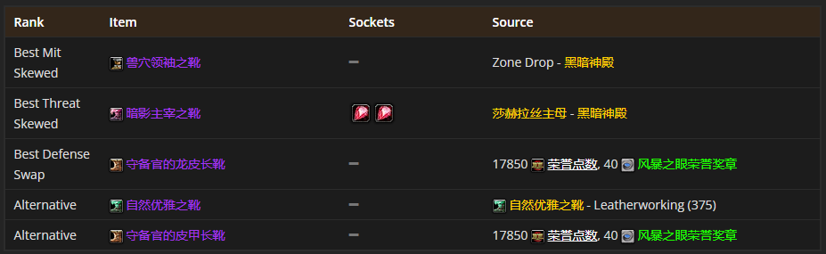 要是挑选脚部装备的话,兽穴领袖之靴是首选哦。至于附魔嘛,我推荐附魔长靴 - 豹之迅捷。