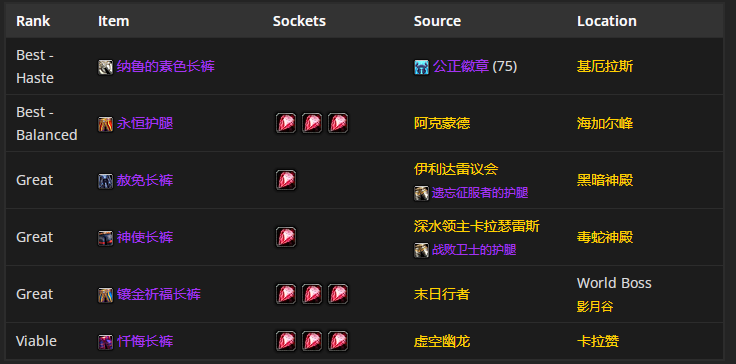 腿部装备首选纳鲁的素色长裤,附魔推荐 金色魔线
