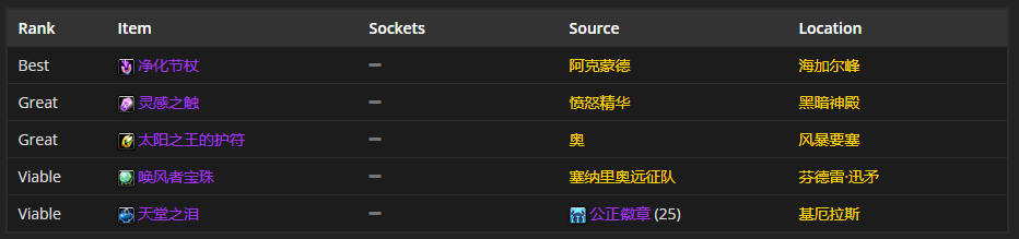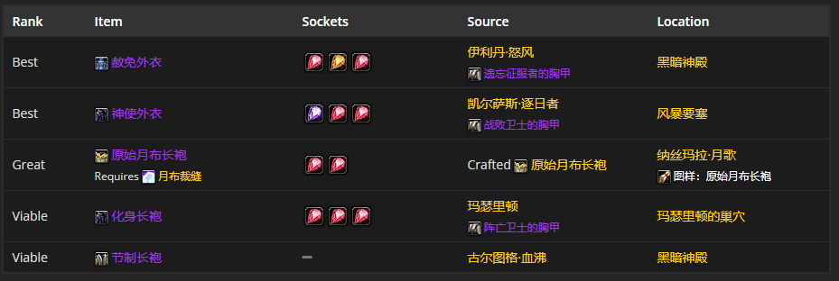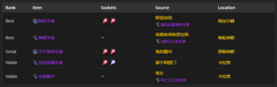 肩部装备首选赦免衬肩,附魔推荐天灾的活力