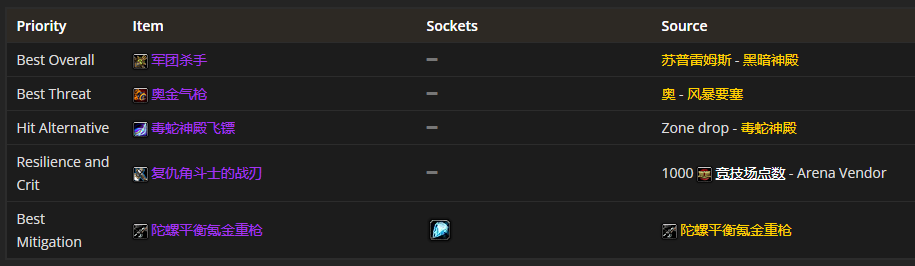 胸部装备的话,首先推荐复仇角斗士的板甲护胸。至于附魔嘛,附魔胸甲 - 杰出属性、特效韧性是很不错的选择。