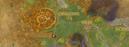 如果是从地图上看,就在沙塔斯城的城字附近。