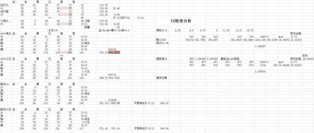 T5套装特效评分这块,参考了2008年的一个老帖子。那个帖子里的数据是41/0/20,腐蚀数据比较高。不过呢,每跳提升的差距百分比还是能用的。