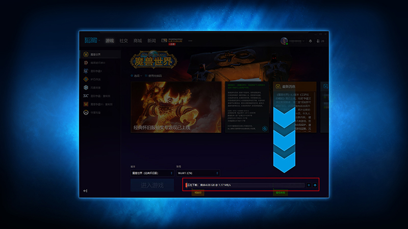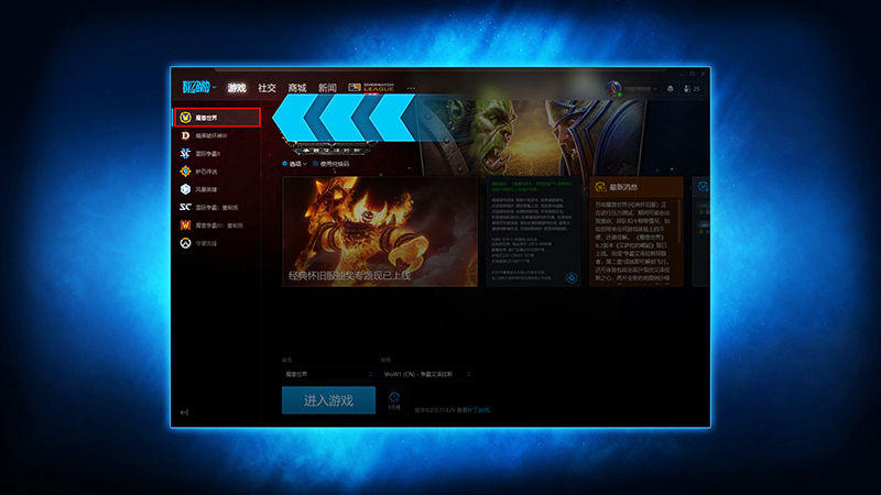 先把战网桌面应用下载下来,然后用战网通行证去登录。登录之后呢,在左边的菜单里找到《魔兽世界》并选择它。