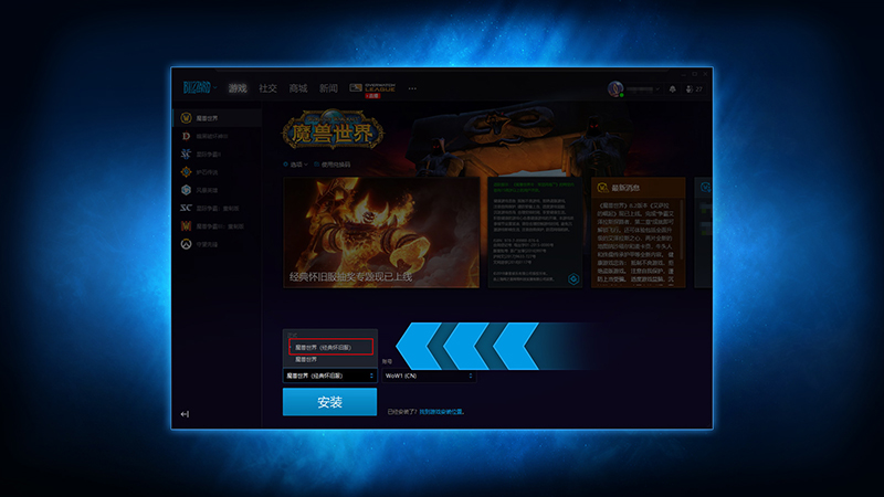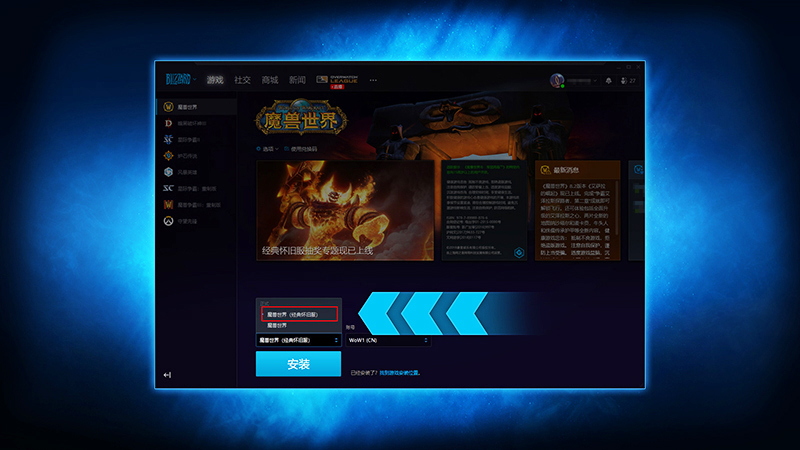 先在菜单里找到“魔兽世界(经典怀旧服)”这个选项,然后再去点击安装的按钮。