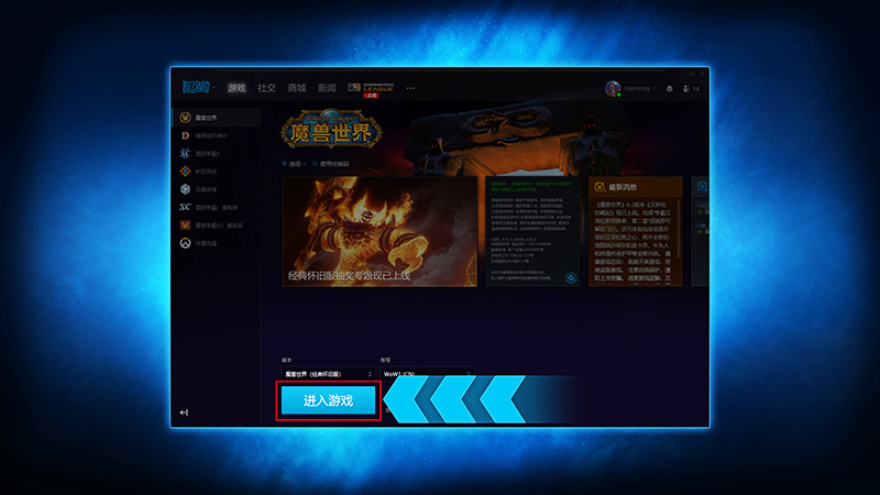 在安装《魔兽世界》经典怀旧服完毕后,只要点击“进入游戏”这个按钮,就能开始玩这个游戏啦。